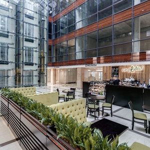 | Инфраструктура | в торгово-офисной галерее - кофейня, столовая, фитнес-центр, супермаркет «Перекресток», коворкинг-центр, химчистка, аптека, магазин сувениров, салон цветов |